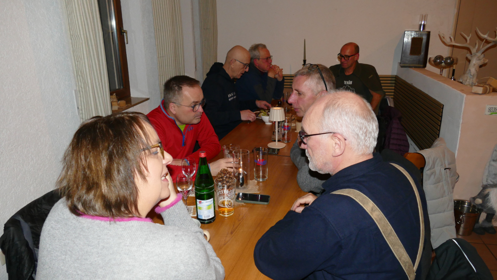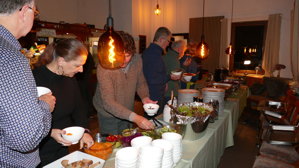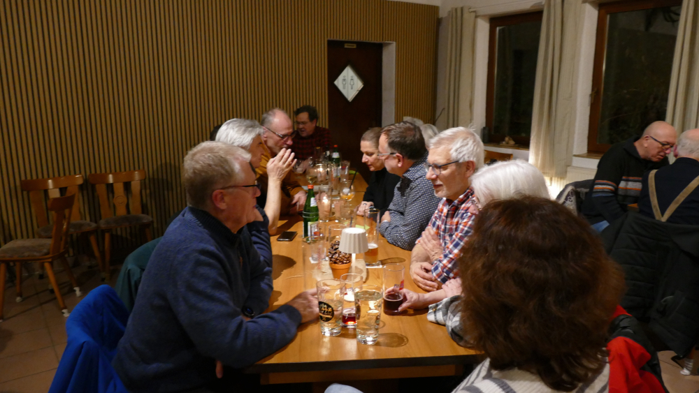 Am 10.1.2026 war es mal wieder soweit: unsere Sportgruppe "Querbeet" veranstaltete ihr Jahresevent, diesmal eine Wanderung vom Haardter Dorfplatz über den Sonnenweg bis in etwa auf die Höhe der Wolfsburg. Dort angekommen empfing die Gruppe eine Glühweinpause. Von dort aus führte der Weg zum Vereinslokal "Waldschenke". Hier erwartete die über 50 Teilnehmer*innen ein wunderbares Wildschweingulasch und ein Kurzvortrag "Querbeet für Einsteiger". Eine gelungene Veranstaltung mit, einmal mehr, gutem Essen in der "Waldschenke"! (Zum Vergrößern auf die Bilder klicken).